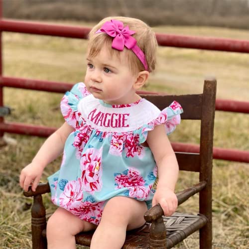 Babeeni Smocked Bubble for Girls-Geometric Tiny Flowers Hand Smocked Pattern On The Collar-Blue