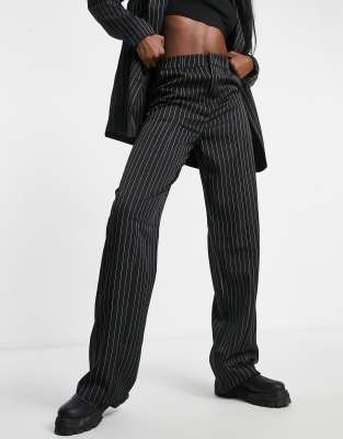 Black Pinstripe Straight Leg Trousers