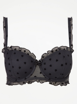Entice Black Heart Print Mesh Balcony