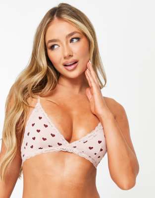 Forever 21 Heart Print Lace Bra in Pink