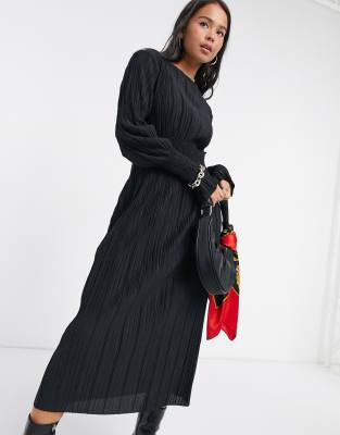 River Island Black Plisse Midi Boat