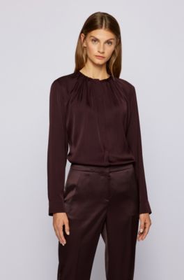 BOSS - Ruched-neck blouse in stretch