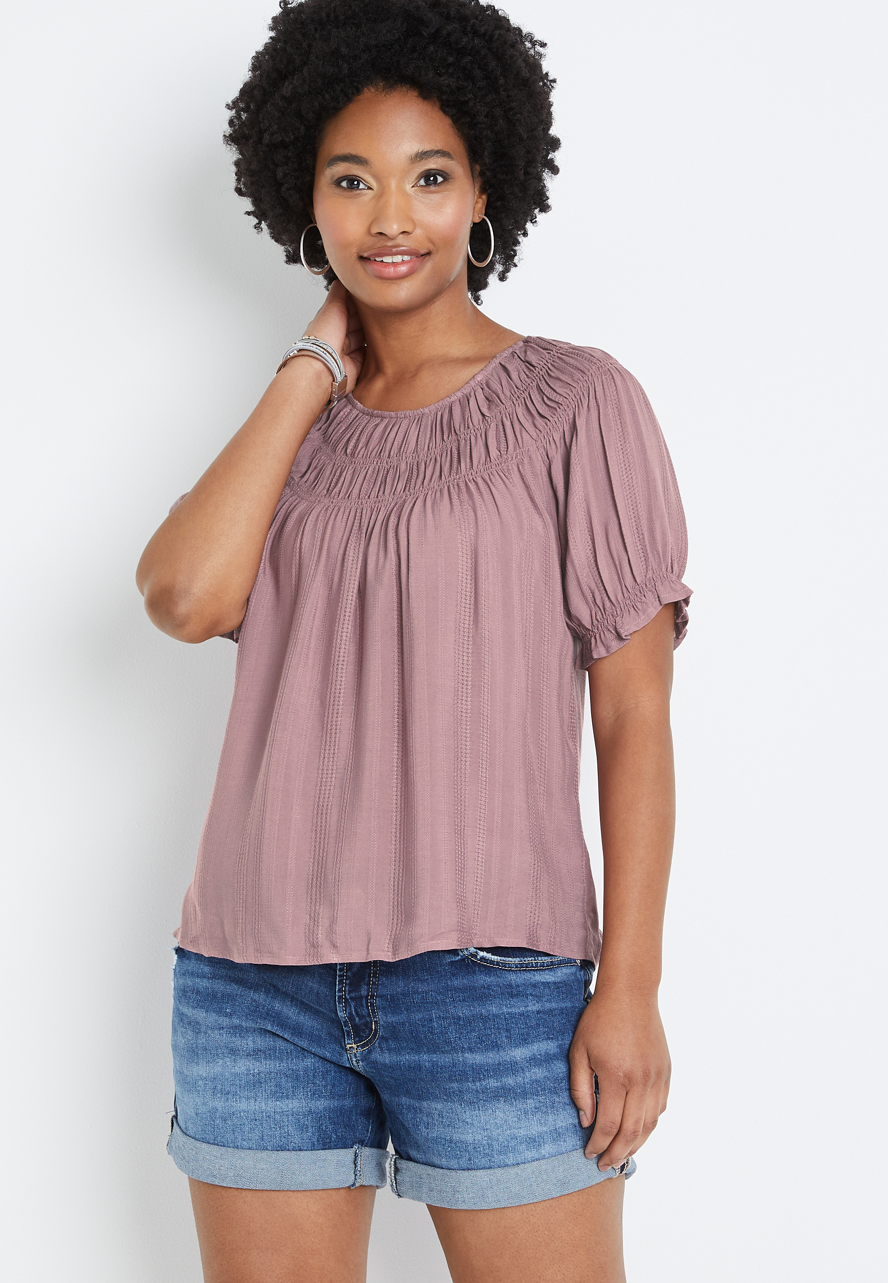 Solid Ruched Neck Blouse | maurices
