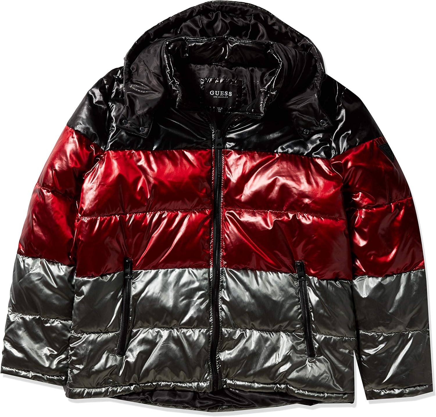 GUESS Men's Shiny Colorblock Hooded Puffer Jacket - Macy's
