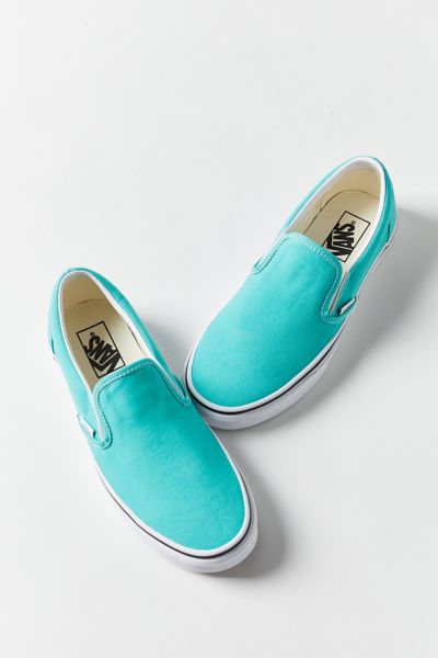 Teal Green Suede Vans Classic Slip Ons