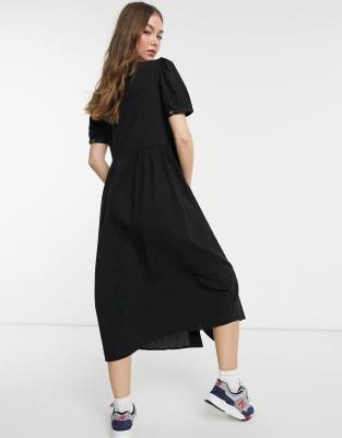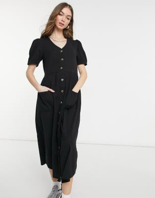 Warehouse textured midi dress in black
